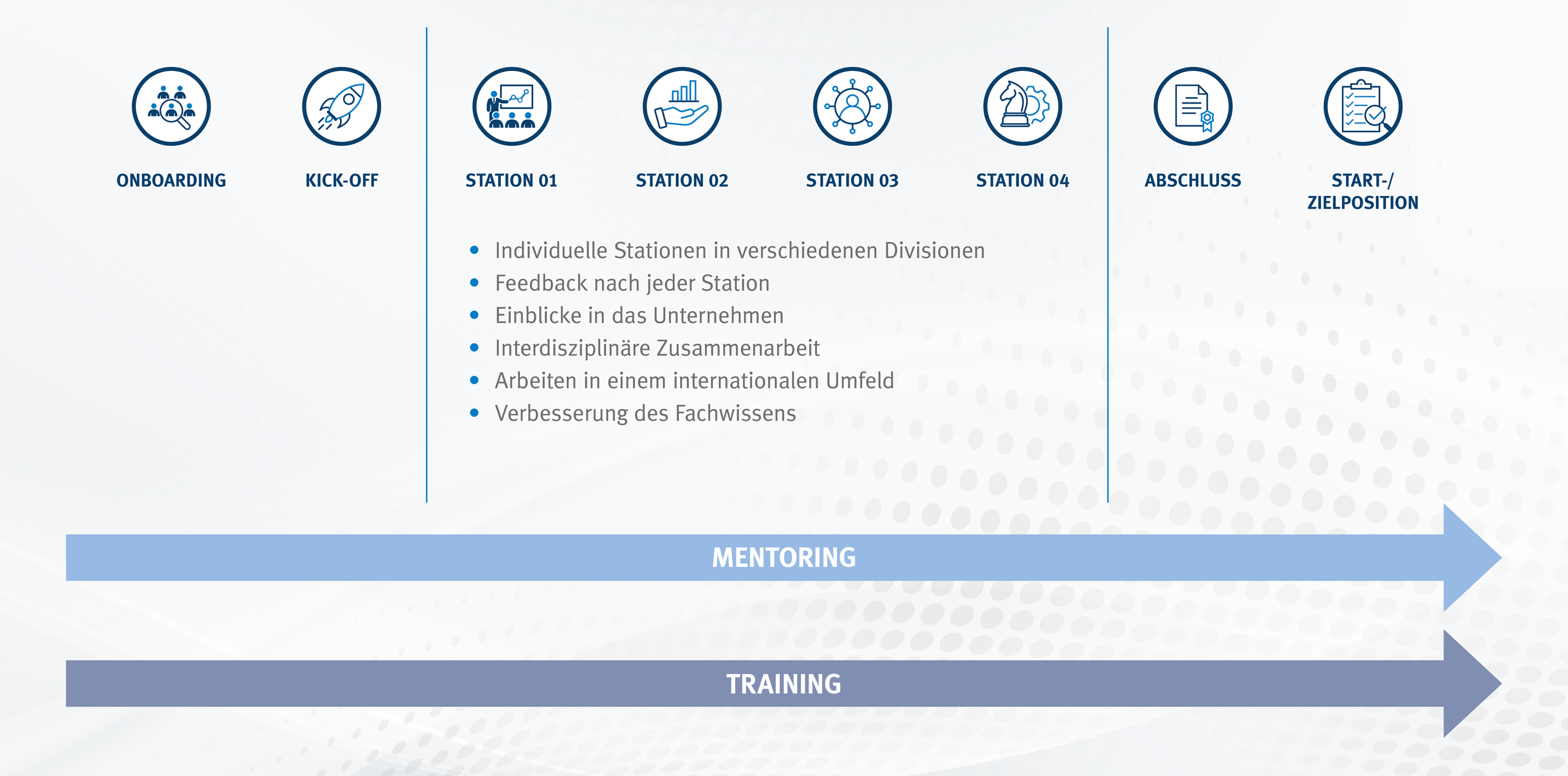 Sie werden vom ersten Tag an von persönlichen Mentorinnen und Mentoren begleitet, profitieren von intensiven Networking-Möglichkeiten und individuellen und vielfältigen Weiterentwicklungsmöglichkeiten, sowohl extern als auch intern, unter anderem in der Rheinmetall Academy.