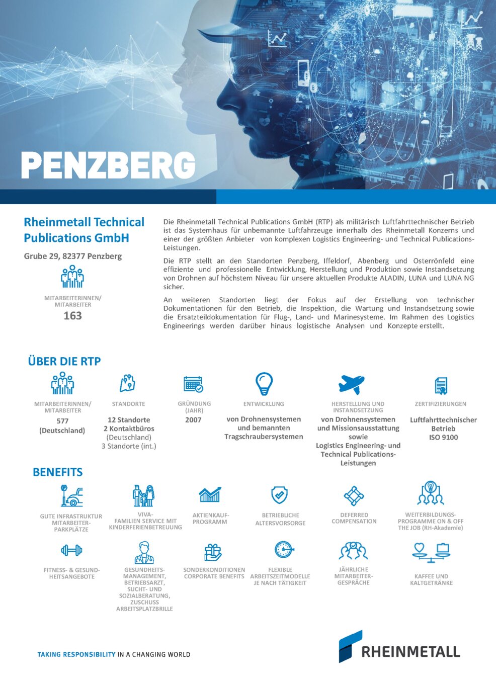 Bei der Rheinmetall Technical Publications GmbH in Penzberg bieten sich tolle Karrierechancen für Berufseinsteiger (m/w/d) mit ingenieurwissenschaftlichem Hintergrund und technische Spezialisten (m/w/d) der Luft- und Raumfahrt.