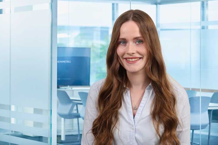 Ich bin bereits seit acht Jahren im Unternehmen. Damals habe ich die Ausbildung zur Industriekauffrau bei Rheinmetall begonnen. Innerhalb der Ausbildung durfte ich verschiedene Abteilungen wie die Human Resources, den Vertrieb sowie den Einkauf durchlaufen. Meine Vertiefung zum Ende des letzten Ausbildungsjahres absolvierte ich in der Abteilung Materialmanagement, in der ich nach Ausbildungsabschluss auch übernommen wurde.