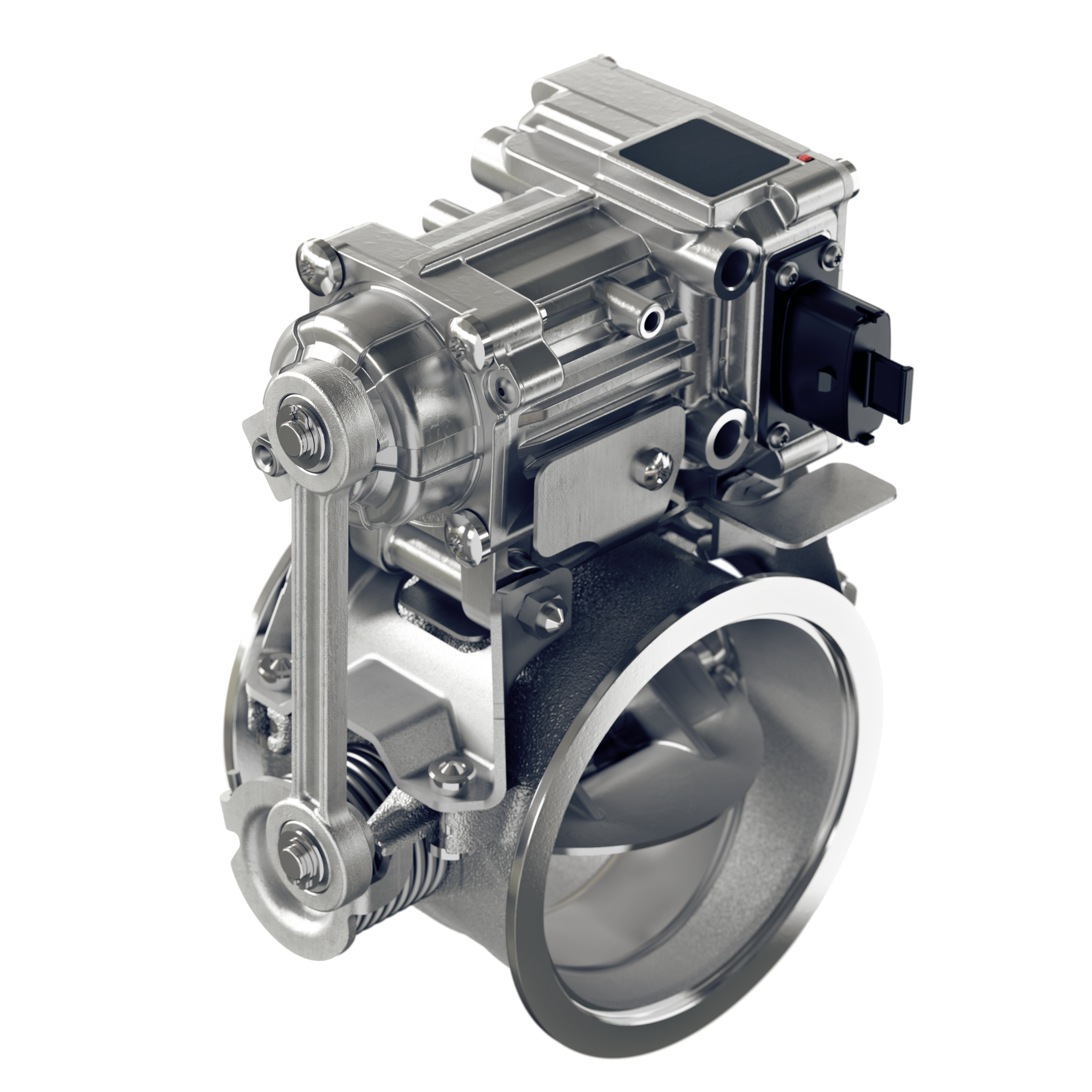 Smarte HD-Abgasklappen oder Back Pressure Valves (BPV) sind bis 120 mm Rohrdurchmesser mit unterschiedlichen Flanschlösungen erhältlich. Aufgrund der hohen Vibrationsbelastungen sind verbaute Aktuatoren vom eigentlichen Klappengehäuse entkoppelt. Die Regelung übernimmt meist ein smarter Heavy Duty Aktuator mit Microcontroller. Dieser kommuniziert über ein CAN-Signal mit dem Motorsteuergerät. Der elektrische Anschluss erfolgt entweder über einen integrierten Stecker oder über eine Kabelschwanzlösung. Spezielle Servicefunktionen lassen sich über ein Softwarelayer anpassen.