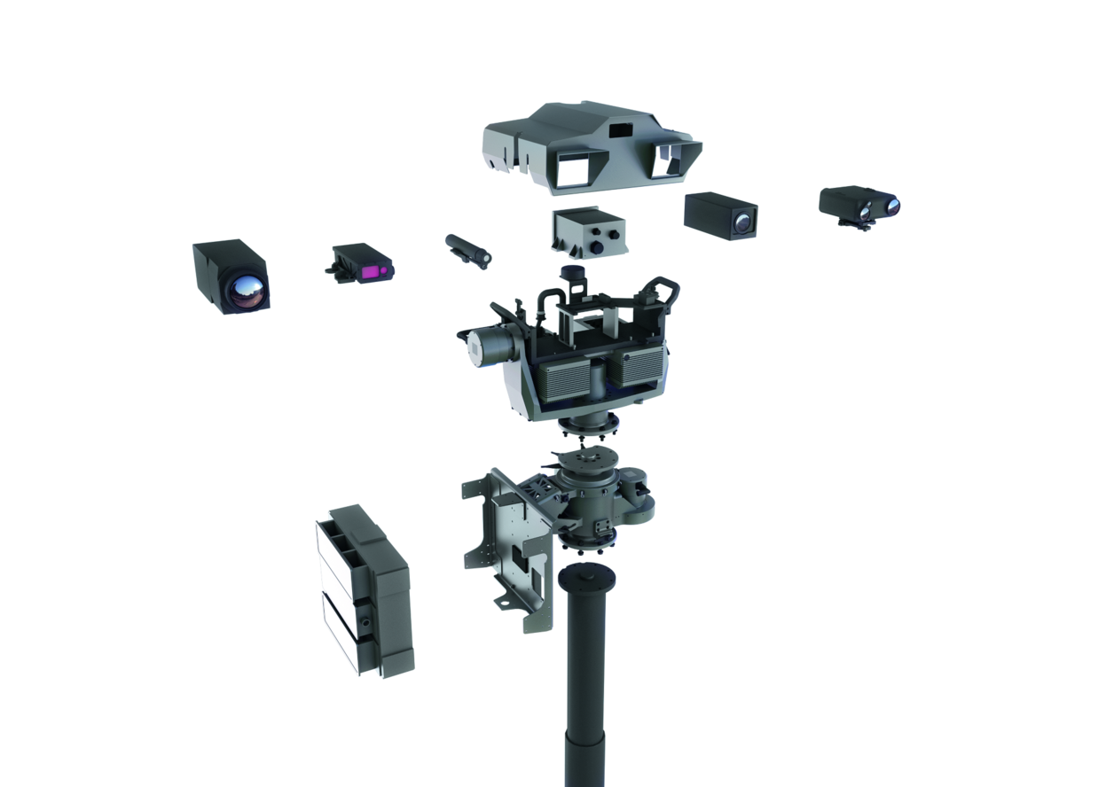 Das System ist modular aufgebaut, um spezifische Kundenanforderungen zu erfüllen und die Komponenten können je nach Bedarf auch unter Feldbedingungen ausgetauscht werden. Die Sensoren und das Steuerungssystem sind in einem Multi-Sensor-System integriert, das an einem ausfahrbaren Mast auf einem Fahrzeug oder auf einem Stativ in der Nähe des Fahrzeugs montiert ist.