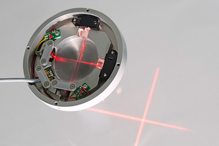 Um den zu untersuchenden Körperteil – zum Beipsiel beim Röntgen – exakt positionieren zu können, wird darauf ein Fadenkreuz projiziert. Dies geschieht normalerweise mit einem Kreuzlaser. Eine spezielle Herausforderung stellte hier die sehr niedrige Bauhöhe dar, welche unbedingt eingehalten werden musste. Realisiert wurde dies durch geschickte Anordnung der Laserdioden in Kombination mit Optiken und Spiegeln.