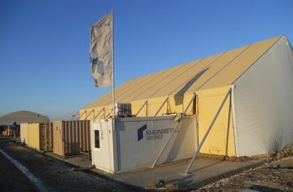 Optional ist der Einsatz einer eigenen Rheinmetall Infrastruktur inkl. hochgeschützter Unterkunftscontainer und mobiler Werkstatt möglich.