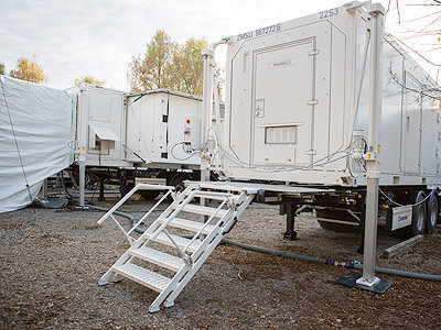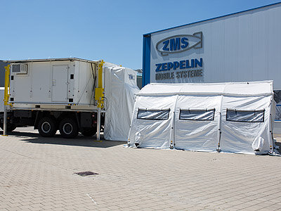 ZEPPELIN Rettungssysteme können auf allen LKW-Fahrgestellen mit 20' Containerrahmen in Betrieb genommen werden. Die Einzelshelter werden ja nach Rettungssystem über spezielle Korridore oder Verbindungsshelter mitein-ander verbunden. Überall dort, wo schnell auf medizinische Notstände reagiert werden muss, sichern die modular aufgebauten Rettungssysteme die professionelle und sichere Versorgung. Je nach Konfiguration werden verschiedene Medizinausstattungen realisiert.