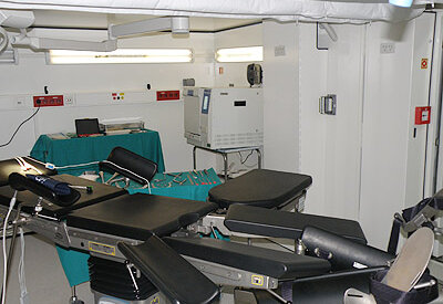 In der zugehörigen Poliklinik können je nach Konfiguration fachärztliche Routine-untersuchungen und Behandlungen, z.B. Dental, HNO, Augenarzt, durchgeführt werden. Mit acht LKW-Gespannen ist die Rettungsklinik eine umfassende Versorgungseinheit mit höchster Mobilität, die sowohl kurzfristige als auch langfristige Einsätze ermöglicht.