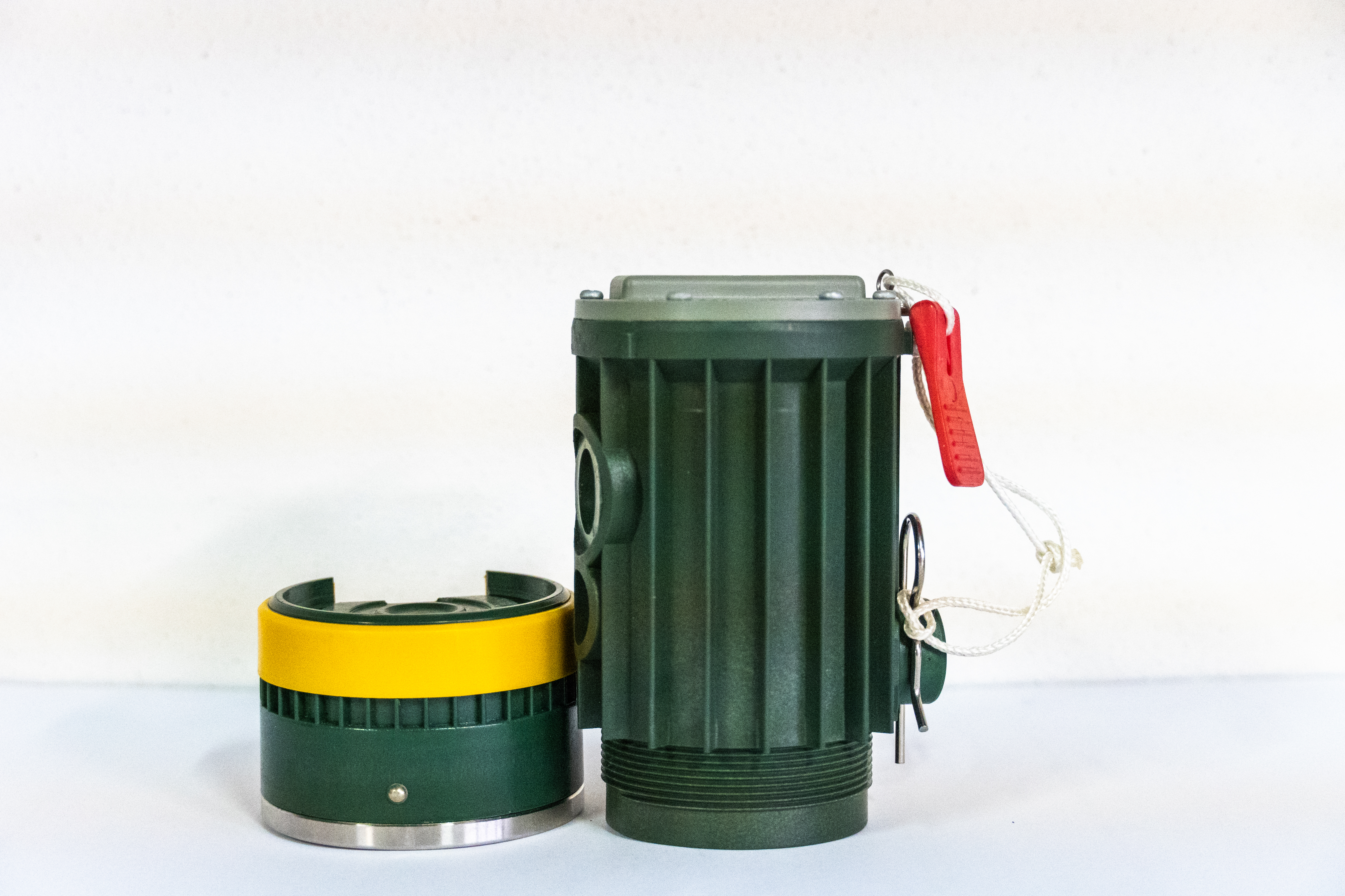 Die DC103 DSC (Diver Scare Charge) ist eine von Hand abgefeuerte Wasserbombe, die zum Schutz von Schiffen, Booten und strategischen Standorten vor feindlichen Tauchern eingesetzt wird. Die DC103 DSC ist frei von Elektronik und Batterien und basiert auf einer mechanischen Zündschnur, die auf Wasserdruck reagiert. Diese Eigenschaft garantiert einen sicheren Transport und eine sichere Handhabung, selbst in Gegenwart starker elektromagnetischer Felder. Die DC103 DSC detoniert nur, wenn die werkseitig voreingestellte Explosionstiefe erreicht ist. Eine versehentliche Aktivierung in der Luft ist ausgeschlossen. Bei Bedarf können die Sicherheitsverriegelungen im Falle eines Missionsabbruchs wieder angebracht werden, um das System für eine andere Mission wiederverwenden zu können. Die DC103 DSC verfügt über eine Sterilisationsfunktion, die eine sichere Handhabung bei der Entsorgung des nicht explodierten Geräts ermöglicht, und zwar etwa 6 Stunden nach dem Abwurf im Wasser. Die DC103 DSC ist mit einer 250 g HE-Hauptladung oder einer 450 g HE-Hauptladung ausgestattet, die entweder in einer A480-Munitionsstahlbox oder in einer nichtmagnetischen N34-Aluminium-Munitionsbox verpackt ist. Die DC103 DSC hat eine Haltbarkeit von 10 Jahren und ist wartungsfrei.