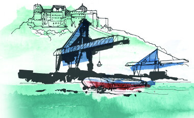 Der Blick vom Heidelberger Schloss auf den Neckar ist weltberühmt. Verkehren auf dem natürlichen Flusslauf hauptsächlich Sport- und Ausflugsboote, nutzen Frachtschiffe den kanalisierten Teil des Neckars. Zum Be- und Entladen steuern sie zum Beispiel den Binnenhafen an der Staustufe Wiblingen an. Dort herrschte in den 1950er Jahren reges Treiben.Beim Umschlag von Kohle, Koks, Kies, Sand, Gips und Stückgütern wollte die Rheinmetall A.G. behilflich sein. In Düsseldorf gab man nach dem Ende des 2. Weltkriegs die Devise aus, verstärkt zivile Geschäftsfelder zu erschließen, um das Werk auszulasten. Ein Vorhaben, dessen wirtschaftlicher Erfolg – vorsichtig ausgedrückt – zweifelhaft erschien. Der Vorstand ließ sich jedoch nicht beirren und gründete die „Abteilung T/V (Transport- und Verladeeinrichtungen, die Red.) und fahrbare Krane“.