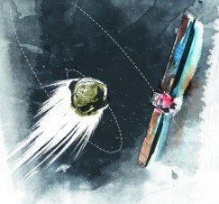 Was aber hat eine Geschichte über eine solche Zeitreise in die „Urknall-Epoche“ in der Jubiläumszeitung von Rheinmetall zu suchen? Nun – „Rosetta“ kann ihre wissenschaftlichen Instrumente nur dann auf dem Kometen benutzen (lassen), wenn ihr bei geschätzten Temperaturen von minus 270 Grad Celsius die perfekte Landung geglückt ist. Und hier kommt Rheinmetall ins Spiel: Ohne Treibladungspulver der Nitrochemie wird dies nicht gelingen. Denn die Gravitationskraft des Kometen reicht nicht aus, die Sonde einfach nur abzusetzen, sie würde wie ein Gummiball zurücktitschen. Deswegen wurde ein Harpunensystem entwickelt – angetrieben von einem Gasgenerator mit Treibladungspulver der Nitrochemie. Nach mehreren Jahren einer kontrollierten Reise durch das All wurde 2011 der Kontakt mit der Raumsonde abgebrochen, um Energie zu sparen.