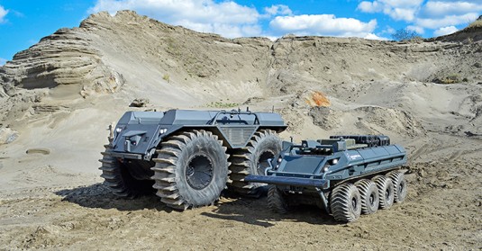 The Rheinmetall Mission Master XT thrives in extreme terrain. It easily tackles ice, snow, and sub-zero weather conditions, as well as sandy, rocky and mountainous topography. Its advanced amphibious capabilities allow it to float and swim while maintaining its full payload capacity. Weighing in at 2217 kg, this powerful A-UGV can carry a 1000 kg payload in all scenarios, allowing troops to transport special equipment to hard-to-reach locations. The diesel-powered engine allows it to travel 750 km without refuelling, while lithium-ion batteries enable up to 6 hours of silent watch operations.