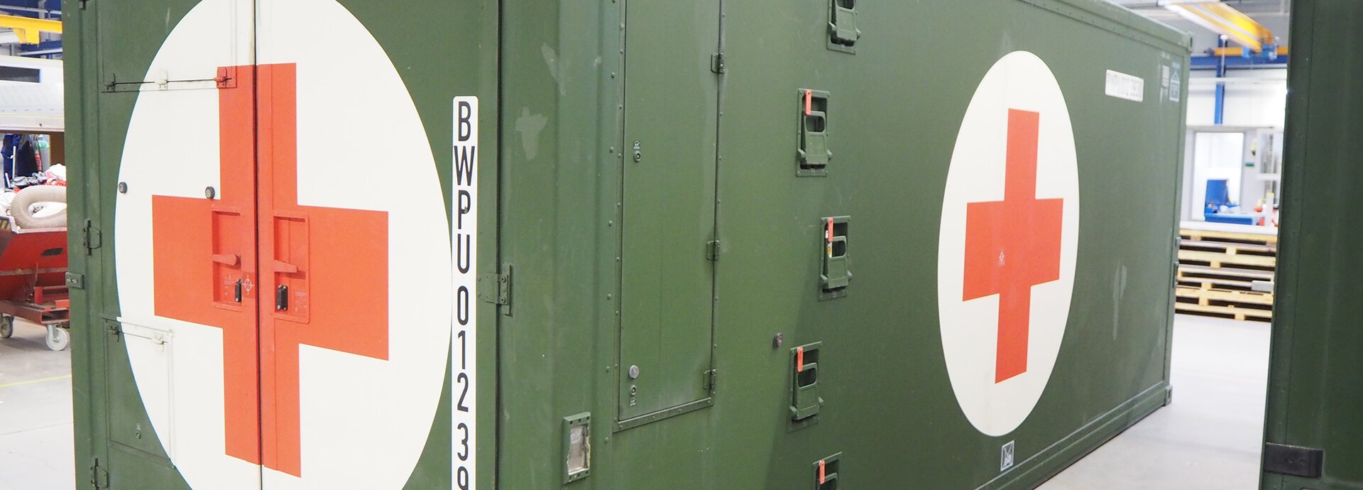 Known by their German initials as MSE containers, they constitute a family of modular medical facilities. Fabricated since the 1990s, multiple variants of these units have been procured and are now undergoing comprehensive regeneration.