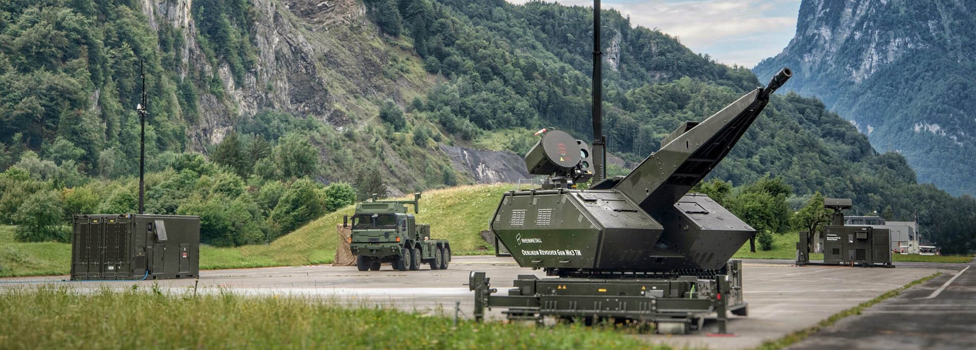 Skynex is a cannon-based air defence system and is therefore especially suitable for close-range protection where guided weapons cannot operate effectively. The 35mm Revolver Gun Mk3 cannons have a cadence of 1,000 rounds per minute and a range of up to 4 kilometres. The system uses programmable Ahead ammunition that is resistant to electronic countermeasures and ensures precise target engagement. In terms of cost-effectiveness, the ammunition is significantly more efficient than comparable missile-based systems.