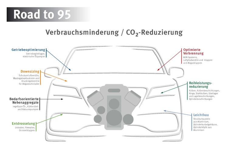 However, friction-optimised coated pistons and bearings made of different materials, valves for controlling the exhaust gas turbocharger or the sector of lightweight construction made from aluminium alloys are also among the top performers in the fight against CO2 emissions.