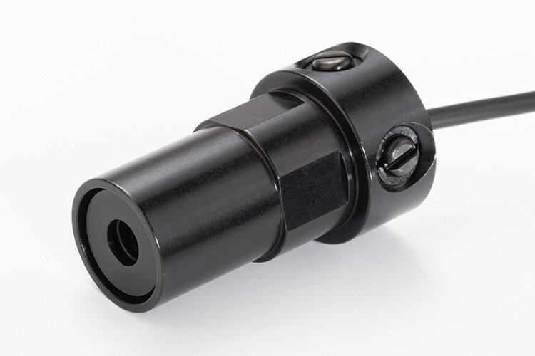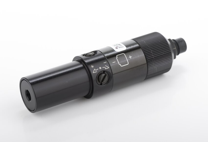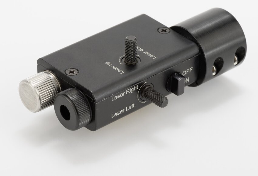 The alignment laser has an integrated X/Y axis adjustment, with which the beam can be adjusted to an accuracy of 0.24 mrad. The power is supplied by a battery. The laser is activated by a push button or an optional remote control. The outer diameters of 18 mm and 22 mm are available for mounting the laser.