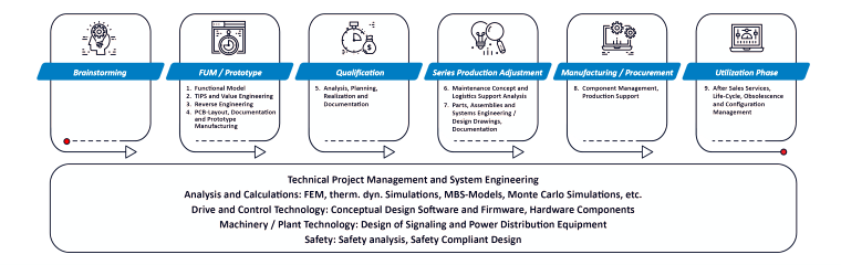 Safety requirements for technical systems are becoming increasingly important in all areas. As a result, the overhead involved in the development, qualification and certification of new products increases. Our development department has many years of experience in the analysis, design and implementation of complex systems with demanding safety, environmental and ergonomic requirements. A team of specialists takes care of the definition of the applicable standards, compiles the corresponding requirements and accompanies the correct implementation of the required measures by means of analyses and expert opinions. Structured procedures combined with experience and expertise enable us to carry out product developments and qualifications in this area of tension in a cost-efficient and optimised manner.