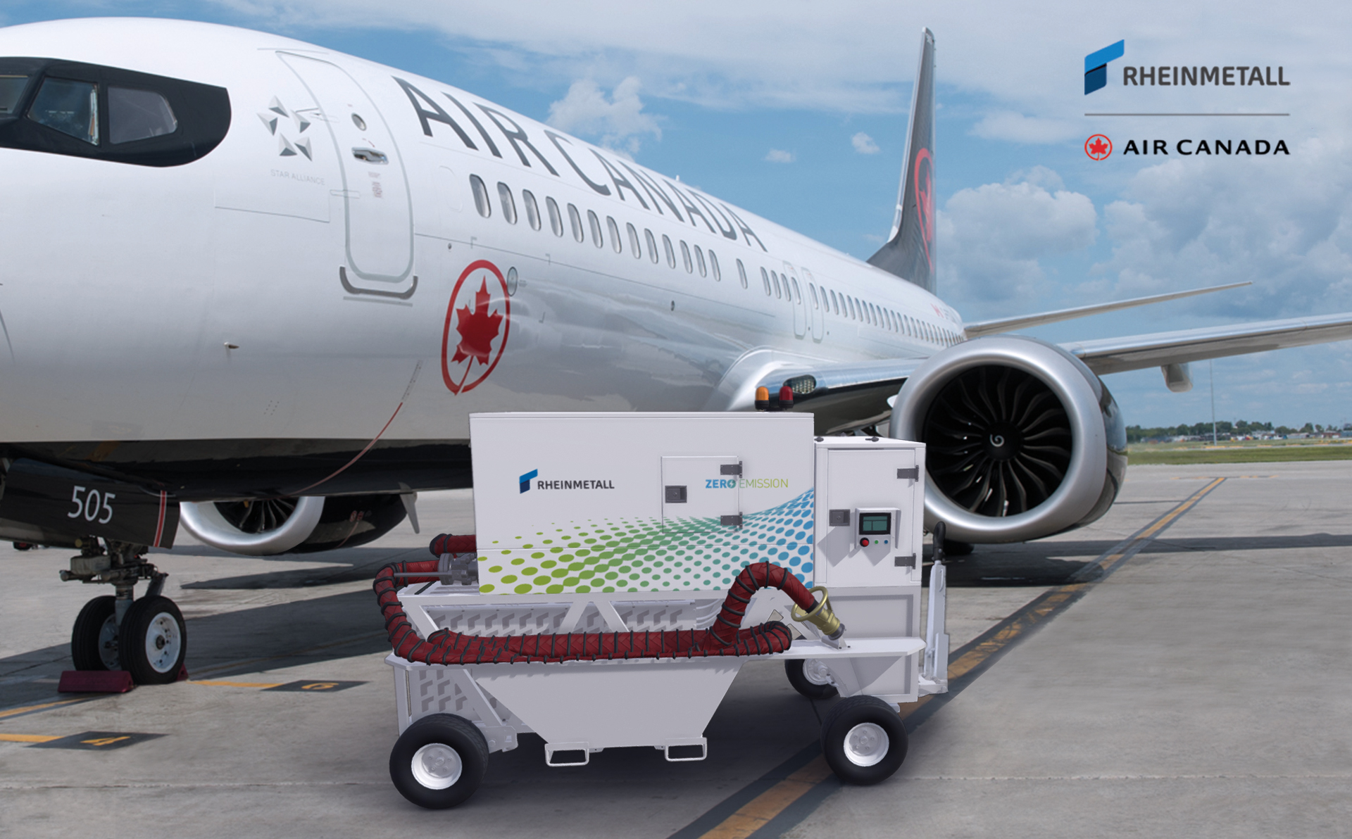 Rheinmetall Canada, la filiale canadienne de Rheinmetall Group, a récemment lancé la première unité de démarrage d'avion entièrement électrique et sans émission au monde. Air Canada est devenu un partenaire de développement et, une fois l'essai de type réussi, prévoit d'intégrer le Rheimmetall eMSU dans sa flotte d'unités mobiles de démarrage d'avion au sol.
